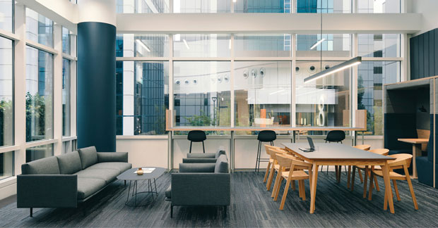 The result is a workplace campus which goes beyond the office space to include amenities ranging from an on-site post office and deck chairs for sunny days to a campus kitchen, coffee shop, picnic area and a wellness centre.