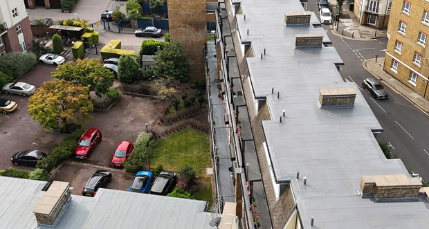 The Riverside Mansions site comprises 3,500 sqm of flat roofing and 1,500 sqm of communal walkways and balconies. After years of ongoing reactive repairs and persistent water ingress, the managing surveyors identified the need for a future-proof solution that would deliver cost certainty and long-term performance.